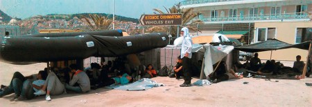 Με τις νέες προσθήκες ο αριθμός των μεταναστών και προσφύγων που βρέθηκαν στο λιμάνι της πόλης ξεπέρασε τους 750. Αυτοί στοιβάζονταν κάτω από πρόχειρα στέγαστρα που έστησαν με πλαστικά καλύμματα, χαρτόνια και κάδους απορριμμάτων για να προστατευτούν από τον καυτό ήλιο, ενώ τρεις φορές την ημέρα στήνονται στην ουρά για το συσσίτιο, που χορηγείται με κονδύλιο του υπουργείου Δημόσιας Τάξης.