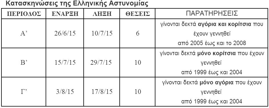 Λόγω του περιορισμένου αριθμού θέσεων θα τηρηθεί αυστηρή σειρά προτεραιότητας.