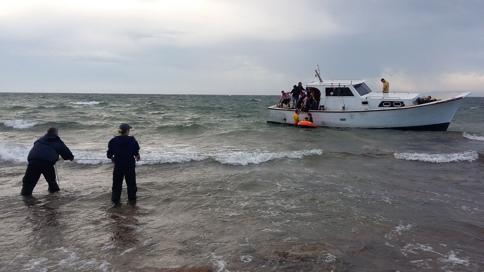 Η Ένωσή μας συγχαίρει τα στελέχη του Λ/Χ Μύρινας, α) Σημ/ρο ΛΣ ΦΩΤΙΟΥ Κωνσταντίνο, β) Σημ/ρο ΛΣ ΜΑΚΡΗ Ηλία και του Λ/Σ Μούδρου, α) Αρχ/στή ΛΣ ΑΧΙΛΛΙΑ Νικόλαο (ΠΛΣ 1010 ευρισκόμενος εκτός υπηρεσίας), β) Επικ/στή ΛΣ ΤΑΣΙΟΥ Νίκη και γ) Λ/Φ ΜΠΟΥΚΛΗ Ιωάννα διότι επιδεικνύοντας ιδιαίτερο ζήλο, άριστη επαγγελματική κατάρτιση, αποτελεσματικότητα και θέτοντας σε κίνδυνο την σωματική τους ακεραιότητα, προέβησαν πρωινές ώρες της 12-09-2015 σε επιχείρηση διάσωσης στην θαλάσσια περιοχή Λουρί Σκανδάλης συνολικά εξήντα τεσσάρων (64) παράτυπα εισερχομένων αλλοδαπών (μετάξύ αυτών ανήλικα παιδιά, μία έγκυος και ηλικιωμένοι) από προσαραγμένο σκάφος σε ύφαλο, υπό αντίξοες συνθήκες (βραχώδης περιοχή – έντονος κυματισμός – βροχόπτωση – άνεμος έντασης 6 BF).